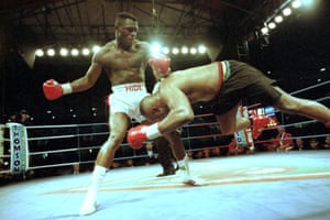 Michael Bentt beats Tommy Morrison to become a world champion. Photograph: Mark Morrison/Getty Images