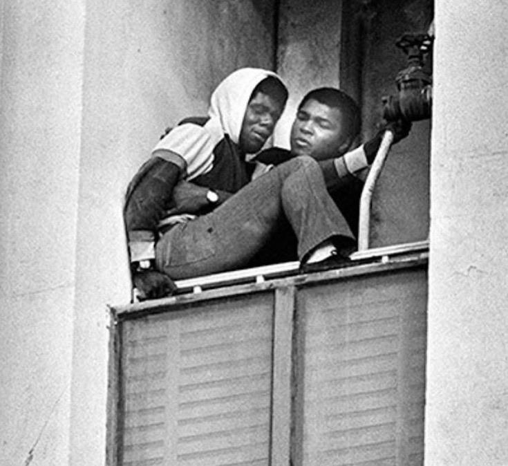 Muhammad Ali talking a suicidal Vietnam Veteran off a ledge, 1981.